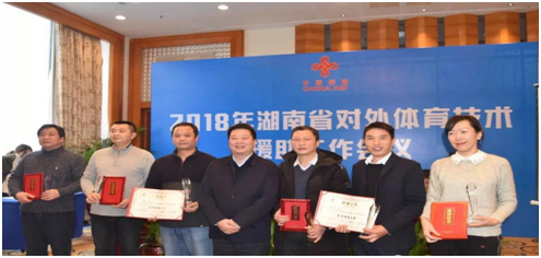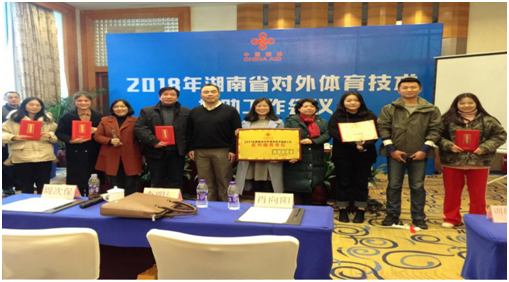 2018年湖南省对外体育技术援助工作会议暨2017年度湖南省体育援外工作先进单位、先进个人表彰会1月20日在湖南长沙顺利召开。中国体育国际经济技术合作有限公司、湖南省体育局、湖南省商务厅及湖南体育产业集团相关领导出席会议。湖南省体育技术援助训练相关承办单位、服务保障单位以及对外体育技术援助项目专家、教练员、志愿者等70余人参加会议。伟德官网外国语学院荣获“2017年湖南省对外体育技术援助工作优秀服务单位”、李明清院长荣获“2017年度湖南省对外体育技术援助优秀管理人员”、5名学生荣获“2017年度湖南省对外体育技术援助优秀志愿者”称号。李明清院长、姚佩芝副院长、商务英语系主任钟玲俐、英语系副主任徐飞及学生志愿者代表受邀参加会议。