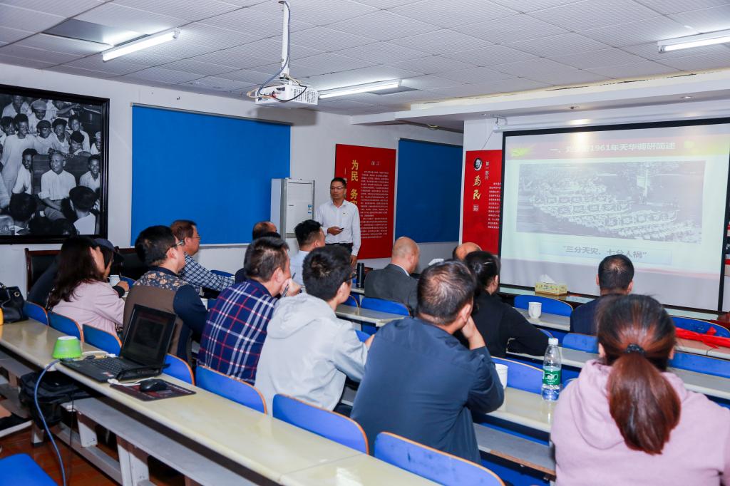 当天,与会者还前往长沙县青山铺镇天华村,参观了刘少奇天华调查纪念馆,在刘少奇天华蹲点调查陈列馆前重温入党誓词,聆听了长沙县委党校万翔同志主讲的《以“人民为中心”深入践行党的群众路线——刘少奇1961年天华调研案例》精彩报告。大家深受感动,表示要以刘少奇同志为榜样,牢固树立实事求是的求真务实意识、艰苦奋斗的优良作风意识、人民至上的公仆服务意识、调研结合的科学调研意识。