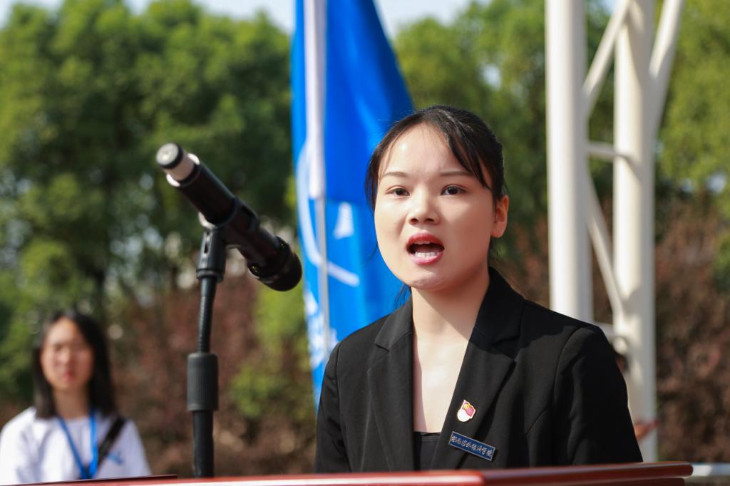 商学院国贸1902班的施文婕代表新生的发言饱含着对大学生活的憧憬:“作为新时代的新青年,我们当谨遵习近平总书记的教导,做到志存高远、德才并重、情理兼备、勇于开拓,以青春之我,创建青春之国家,青春之民族,青春之人类,青春之宇宙。立志求真,知行合一,鸿鹄之志亦可扶摇直上,一揽山海。”