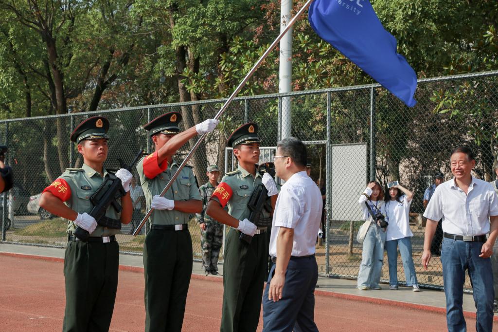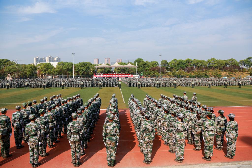 在激动人心的分列式表演环节,最先出场的是学生志愿教导大队教官方阵,他们步伐铿锵有力,动作整齐规范,表现出了军人的风范,为新生做出表率。随后,外国语学院、国际教育学院等各学院新生组成的十二个方阵队接受检阅,队员们身姿矫健挺拔、意气风发、斗志昂扬,饱满的热情感染了会场的每一个人。
