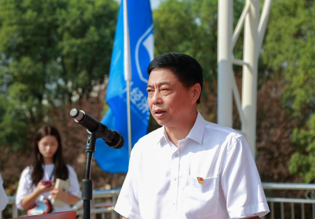 王耀中校长为新生致辞,他代表学校向全体新同学表示热烈的欢迎和诚挚的祝贺,向精心栽培学子的家长和老师表示衷心的感谢和崇高的敬意。王耀中校长表示:“大学是人生当中一段重要而特殊的经历,不仅是人生观、世界观、价值观形成的重要阶段,还是一生当中为数不多可以改变未来的机会。从某种意义上讲,拥有一个怎样的大学生活,将可能决定今后以怎样的姿态步入社会。”他希望同学们能珍惜并充分利用好大学的时光,从内心深处去走近大学,去感悟它带来的点滴,无论是收获、喜悦、欢笑或是失落与挫折,用责任与梦想去重塑心中的象牙塔。