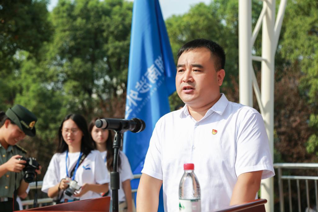全国优秀教、人文艺术学院朱旭云副教授代表教师发言,朱旭云老师引用孟子的一句名言“天将降大任于斯人也,必先苦其心志,劳其筋骨,饿其体肤”告诉同学们,军训结束,人生的新阶段已启航,以后的四年,师生将一起努力,共修成长,并建议新生要学会不惑、不忧、不惧,做新时代有为的青年人。