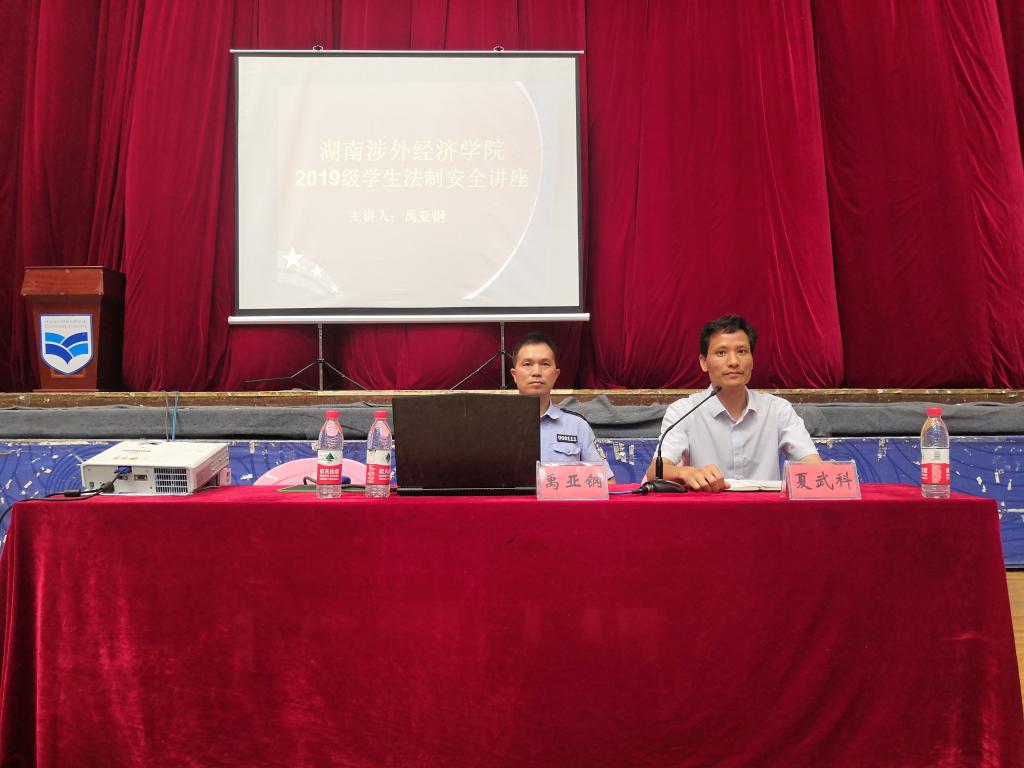 为深入开展法制教育,进一步培养新生法制观念,9月20日下午,伟德官网2019级学生法制安全讲座在体育馆召开。商学院、人文艺术学院、体育学院、音乐学院与外国语学院19级新生及新生辅导员参会。湖南省公安厅政治部宣传处科长,湖南省公安厅官方新媒体“湖南公安”的创建者与负责人,公安部宣传局“警苑心语”编委会成员、政务新媒体学院专家禹亚钢警官担任主讲人,伟德官网保卫处处长夏武科主持本次法制安全讲座。
