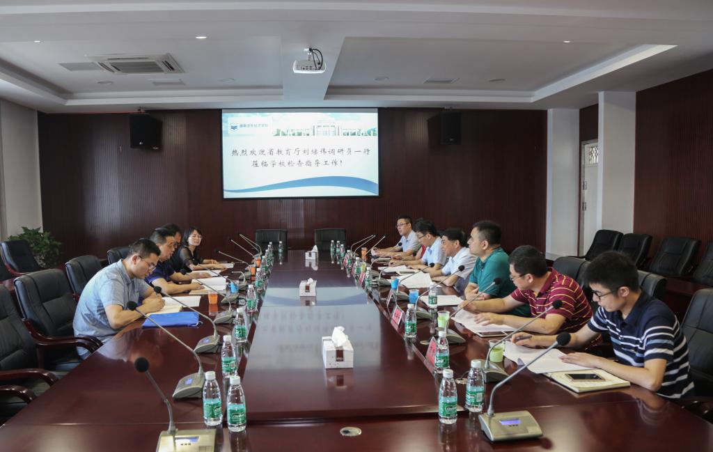 6月28日上午10点,省教育厅刘继伟调研员一行莅临伟德官网,受到伟德官网校长王耀中、副校长陈斌、副校长曹峰举、党政办主任邓青林、教务处处长高金定、财务处处长刘慎、党政办副主任兼工会副主席马洪典等领导的热情接待。双方在新综合楼二楼会议室进行了座谈交流。