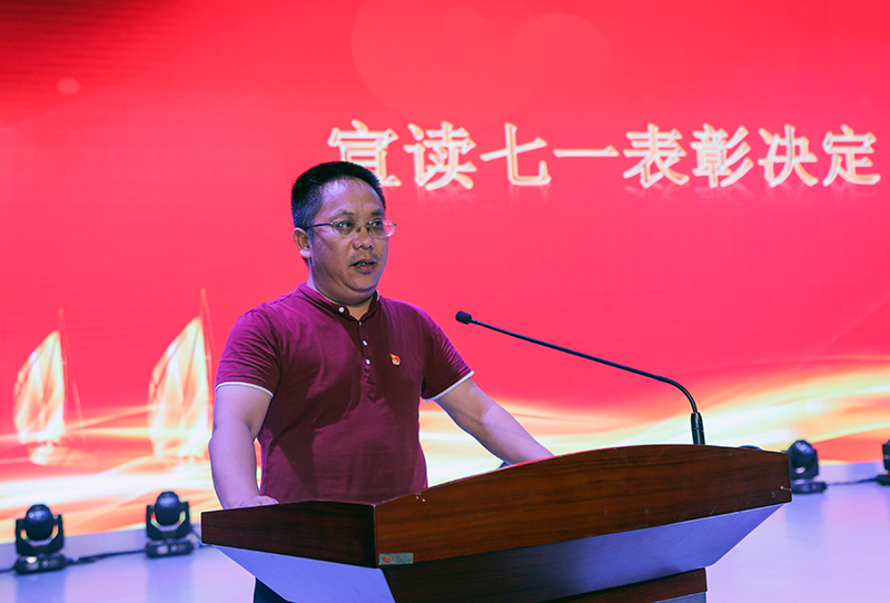 鞠晨曦副校长宣读《关于七一表彰的决定》。商学院党总支、外国语学院党总支、管理学院党总支获得党建工作标杆学院;第四直属党支部、第二直属党支部、信息与机电工程学院学生第二党支部、商学院教工第三党支部、文法学院学生第一支部、体育学院学生党支部、外国语学院学生第二党支部、第一直属党支部、管理学院学生第一党支部、音乐学院学生第二党支部获得党建工作样板党支部;彭浩、高金定、徐飞、陈洁、刘勇、王勇获得“双带头人”标兵;蒋慧敏等15人获得优秀党务工作者,马文娟等19人获得优秀教职工共产党员。另外,商学院分党校、文法学院分党校、艺术设计学院分党校、继续教育学院分党校、信息与机电工程学院分党校获得党校优秀组织奖;信息与机电工程学院党总支、外国语学院党总支、第四直属党支部、第一直属党支部获得2019年党风廉政建设宣传教育活动优秀组织奖。