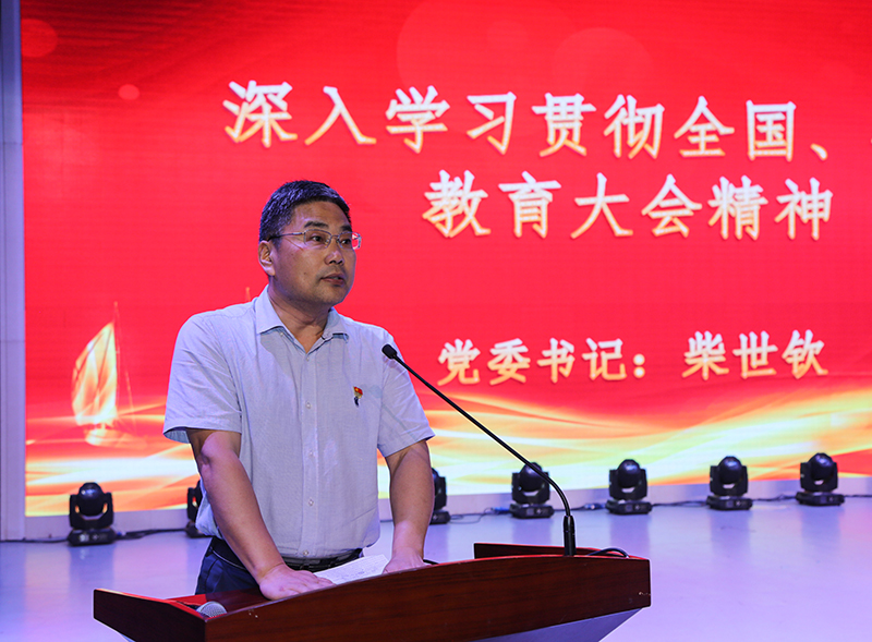 党委书记柴世钦在讲话中表示,在中国共产党建立98周年、新中国成立70周年之际,在全党开展“不忘初心、牢记使命”主题教育氛围中,我们隆重集会,举行新党员宣誓仪式,表彰先进典型,聆听“不忘初心、牢记使命”红色故事,接受革命传统教育,以这样的方式庆祝党的生日,颂扬党的丰功伟绩,坚持初心使命,激发前行动力,具有十分重要的意义。他结合进一步深入学习贯彻全国、全省教育大会精神,重点从加强思想理论武装、搞好党的建设等方面进行了阐述。他强调全校各级党组织要学习把握好习近平总书记关于教育的理论精髓,树立新时代立德树人精神,加强新时代教师队伍建设,全面加强党的建设,将思想和行动统一到中央的决策部署上来,用实际工作成效来检验“不忘初心、牢记使命”主题教育的实效。