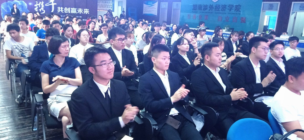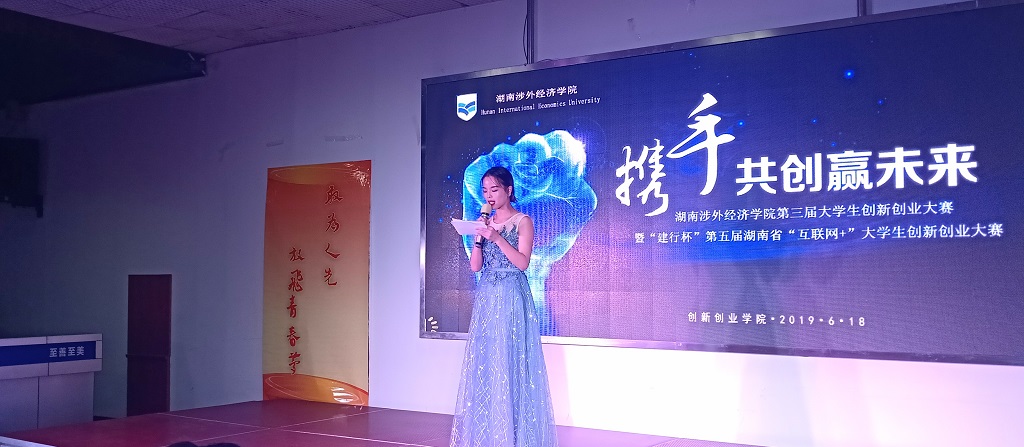 集聚创新思维,携手共创赢未来。为积极营造大学生成长成才的创新创业氛围,引导和帮助大学生树立创新意识、培养创新能力、锻造创业精神,搭建大学生创新创业项目与社会资源对接平台,6月18日晚七点整,创新创业学院举办的第三届大学生创新创业大赛决赛暨“建行杯”第五届湖南省“互联网+”大学生创新创业大赛选拔赛于伟德官网招生就业楼一楼隆重举行。副校长鞠晨曦,学工处处长邝继红,招生就业处处长涂乃天,商学院党总支书记唐志文,管理学院党总支书记吴九海,文法学院党总支书记丁洋等个项目团队指导老师、各二级学院就业创业负责老师莅临本次大赛。大树美业咨询创始人、智美优选美商平台联合创始人王志成,湖南省大中专院校就业创业指导中心市场主管贺阳,人事处常务副处长叶云霞,创新创业学院副院长李方圆,创新创业学院教研室主任梁倩担任评委。