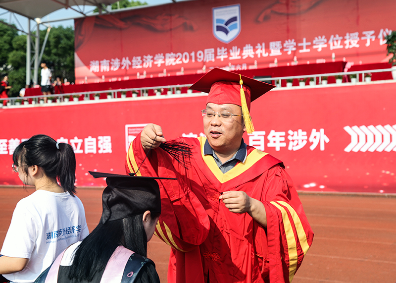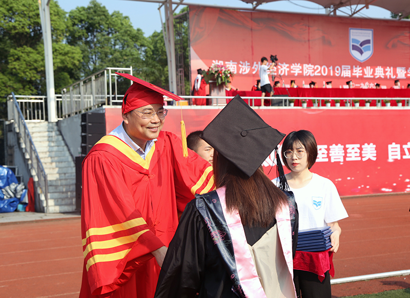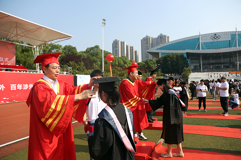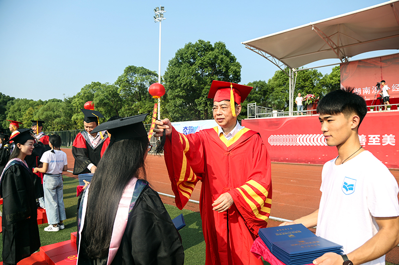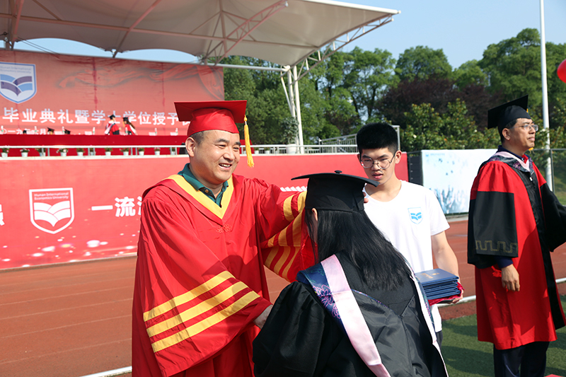 全体校领导、校学位评定委员会委员随后移步到毕业生列队前,为四千余名毕业生授予学士学位。毕业生的每一次握手、行礼,都传递他们对母校的爱与不舍,他们满怀憧憬,铭记“至善至美、自立自强”的校训,带着学校领导、老师和同学们的祝福,踌躇满志书写最精彩的人生华章!