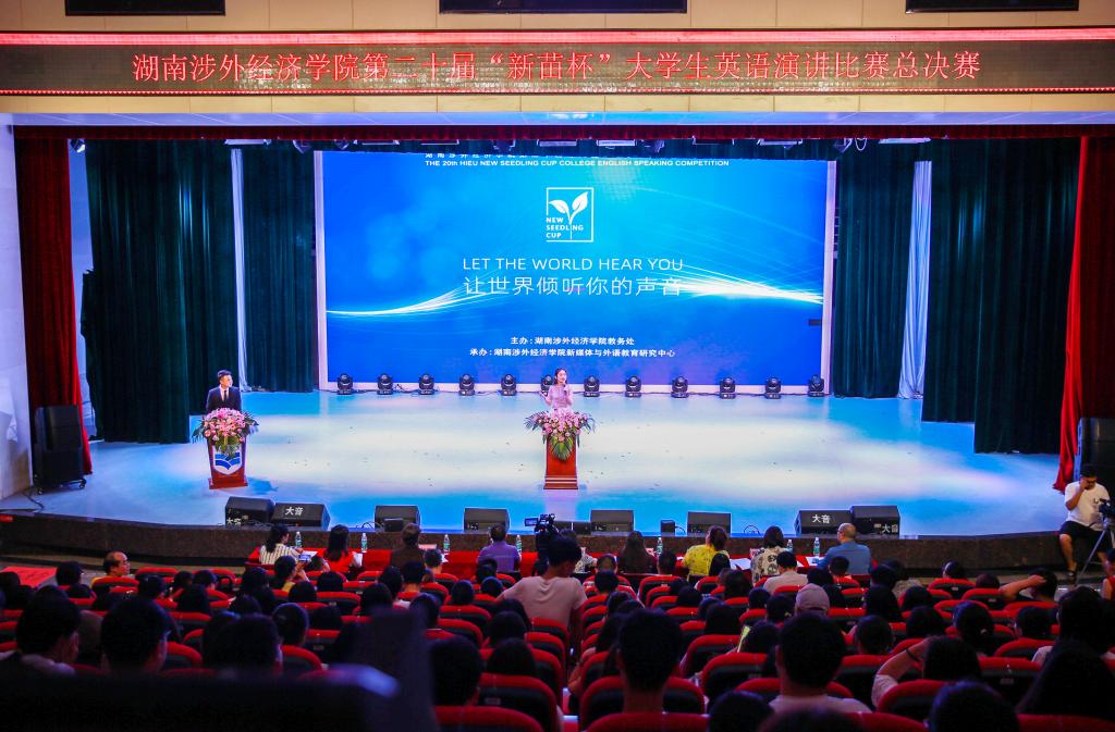 6月10日晚七点,由伟德官网教务处主办、新媒体与外语教育研究中心承办的第二十届“新苗杯”大学生英语演讲比赛总决赛在音乐厅举行。校长王耀中、校党委书记柴世钦、副校长白解红、副校长鞠晨曦等校领导出席当晚比赛现场和颁奖典礼。来自中南大学、湖南师范大学等多所高校的专家教授担任比赛评委。湖南师范大学彭绍东教授作为特约嘉宾莅临比赛现场。