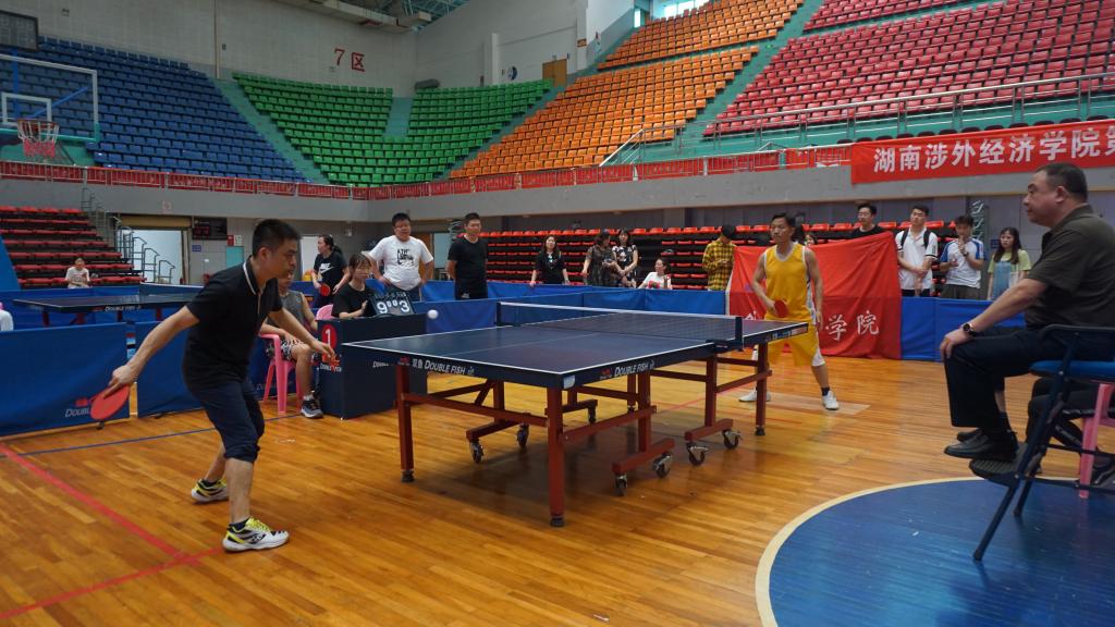 本次教职工乒乓球团体赛由校工会主办,体育学院协办,以各学院基层工会为单位组队报名参加,采用男女混合团体赛的方式进行。共有十六支队伍报名参赛。在为期一周的激烈角逐中,广大参赛队员发挥了敢打敢拼,团结协作的涉外精神,比赛场面十分精彩,吸引了不少师生前来观战加油。