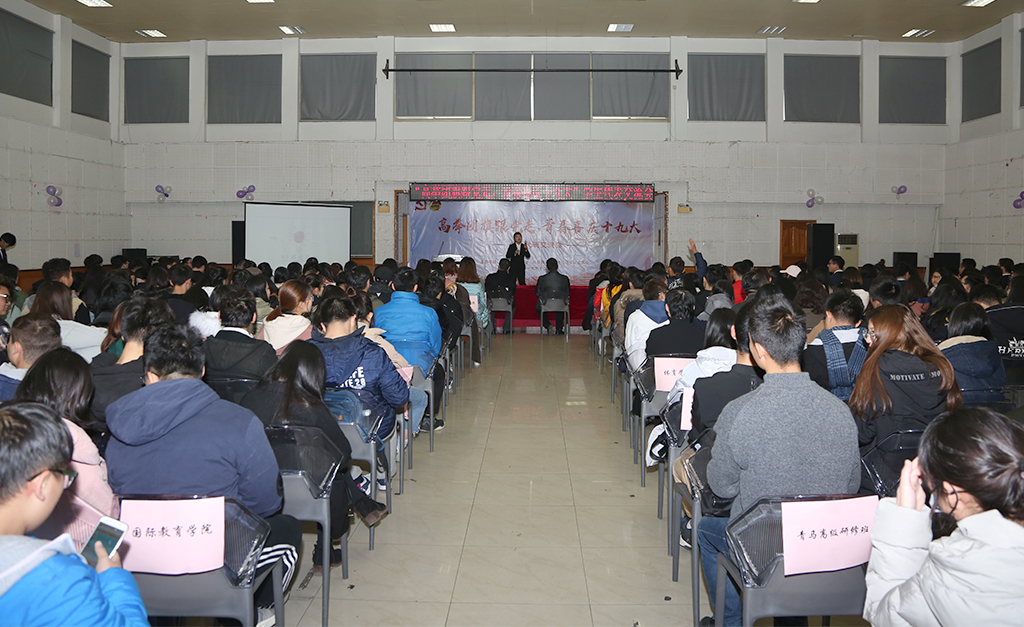 柴世钦在讲话中总结提炼了十九大的新思想、新论断、新提法、新举措,强调要把握重点,加深理解认识,自觉坚定中国特色社会主义的道路自信、理论自信、制度自信、文化自信,紧密团结在党的旗帜下,认真践行社会主义核心价值观,努力成长成才,把自己培养成中国特色社会主义的合格建设者和可靠接班人。他引用习近平总书记在党的十九大报告中对广大青年的寄语,提出了对涉外学子的殷切期望与要求,希望大家不负总书记嘱托,牢记自己肩上的时代使命,刻苦学习,勇挑重担,砥砺奋进,为决胜全面建成小康社会,夺取新时代中国特色社会主义伟大胜利,实现中华民族伟大复兴的中国梦,实现人民对美好生活的向往作出年轻一代的贡献。