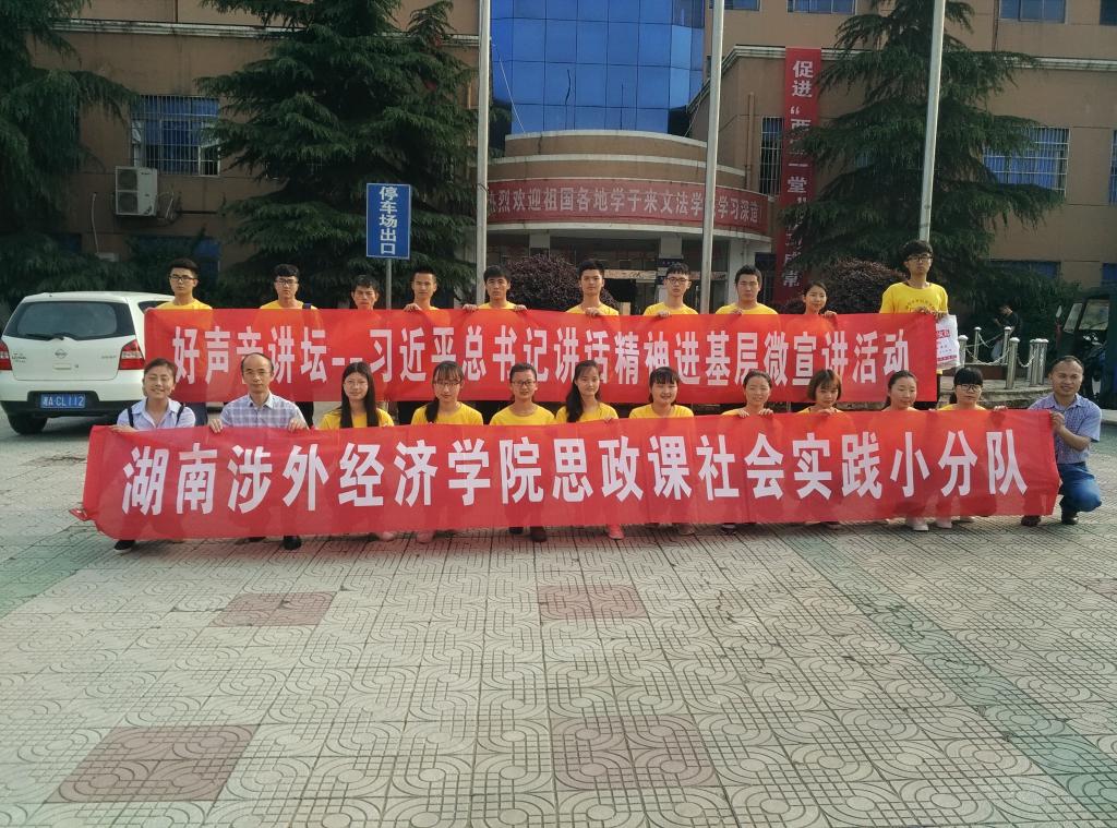为加强伟德官网思想政治理论课实践教学,使学生更好的感受我国美丽乡村建设所取得的成果,结合中共湖南省委教育工委组织开展的2017年度“好声音讲坛——讲话精神进基层”师生微宣讲系列活动安排,思政部组织师生代表共24人于2017年5月5日-6日前往常德汉寿县聂家桥乡实践教学基地开展“习近平总书记‘精准扶贫思想’宣讲进基层”暨社会考察调研实践活动。