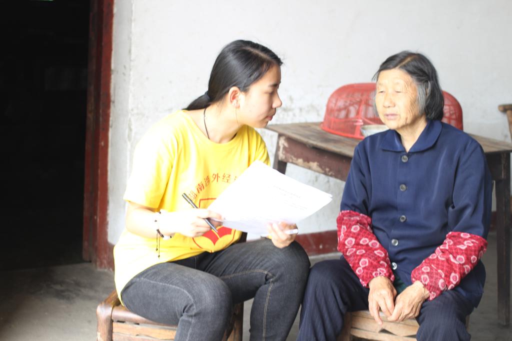5月5日下午,在徐主席的陪同下,师生一行来到了当地敬老院、给敬老院的五保老人送去了慰问物资,之后参观了美丽乡村三元村、武峰村、乡镇企业圣迪服装有限责任公司、花果山中小学生综合实践基地、文化长廊、玫瑰花海、常德龙阳牲猪交易市场。5月6日,学生代表在村干部的带领下,结合本次实践主题走访了当地近200户村民,进行了访谈、发放和回收调查问卷等活动。