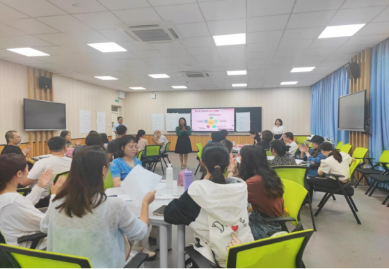 孙晓、韩奉林从有效教学的内涵、BOPPPS的组成元素及作用直入主题,循序渐进、生动风趣的引导并组织参会教师们展开任务领取、教学环节研讨与经验分享,着重阐述BOPPPS教学中的各要素,并强调如何将BOPPPS运用到教学中。在孙晓老师组织引导下现场教师通过参与式学习展开分组讨论,学员分为5组,每组6人,按照BOPPPS模型共同完成一堂课或一个知识点的教学设计,并逐一进行现场分享展示,培训最后所有参会教师就基于BOPPPS如何做好教学设计展开思想碰撞,共同探讨如何实现“以学为中心”的有效教学,现场氛围热烈。