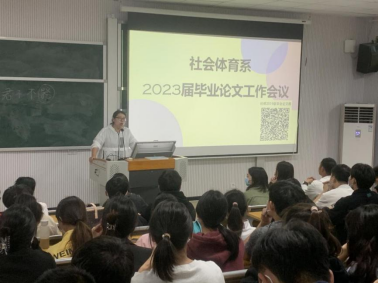 为进一步提高本科生毕业论文指导质量,增进师生交流,体育学院社会体育系于10月19日,在六教113与213教室召开2023届毕业生论文指导工作会议。2019级全体毕业生以及承担2023届本科生毕业论文指导工作的部分教师参加会议,社会体育系主任徐晓琴主持本次会议。