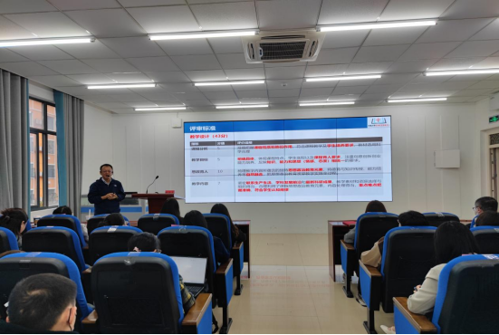 本次培训特邀中南大学“湖南省普通高校课堂教学竞赛一等奖”获得者杜金龙博士主讲,讲座的主题为“以赛促教,追求卓越—教师课堂教学竞赛与教学创新大赛解读与探讨”。杜金龙老师主要从课堂教学竞赛介绍、竞赛评审标准解读与关键问题解读三个方面展开,他强调,我们的竞赛课堂内容选择要有深度、教学呈现有温度、教学组织有宽度、知识讲解有高度、能力培养有难度、教学目标有达成度。他与参会老师一同探讨怎么在体现教学内容专业性、学术性、前沿性的同时,增强教学的趣味性,如何将创新元素与课程思政元素融入教学,现场教师踊跃发言,气氛热烈。