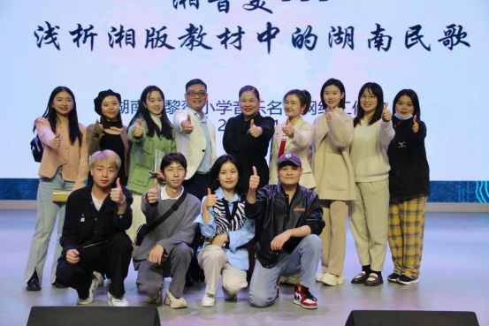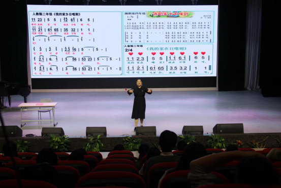 本次讲座以民族五声调式研习曲目作为开场:《牵牛花当喇叭》、《小拜年》、《叮铃铃》、《一根竹竿容易弯》、《浏阳河》),结合湘西山歌、土家咚咚喹、新版教材中的《半条被子》等,最后横向辐射到藏族歌曲《我的家乡日喀则》,带领同学们领略了不同体裁的民歌风采。