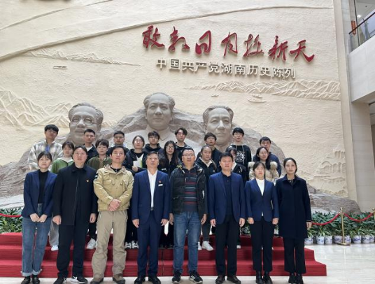 为通过党建引领提供“源动力”,校企融合共建人才“蓄水池”,推进校企合作深入开展,11月15日上午,人文艺术学院党总支联合湖南党史陈列馆组织党员开展校企联合党建共建活动。人文艺术学院党总支副书记周孝贵、教工支部书记李银兴、视觉传达专业主任杨宇、学生支部书记易琴及部分学生党员,赴湖南党史陈列馆开展“共促产学研一体化,坚持共建共育”活动。