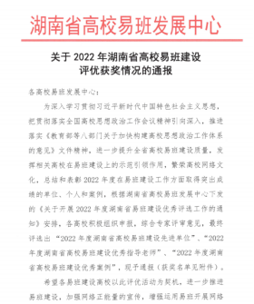 近日,湖南省高校易班发展中心发布《关于2022年湖南省高校易班建设评优获奖情况的通报》,伟德官网获评“2022年度湖南省高校易班建设先进单位”。