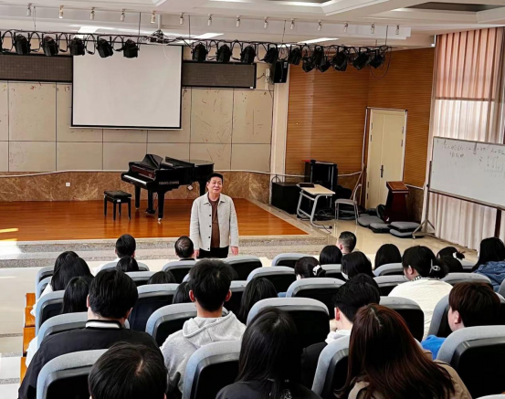 动员大会由音乐学院王跃辉院长主持。他跟实习生们提了四点要求:一、要快速转换身份角色,从一个学生转换为老师出现在学生面前,要以老师的标准严格要求自己,身高为正、学高为范;二、做好专业教学的准备,尽量缩短见习的时间,马上投入到教学及代班主任的工作中去;三、坚持言行雅正、为人师表、以身作则、举止文明;四、与实习学校的老师、学生融洽相处,顺利完成实习工作。最后,他预祝同学们的实习工作圆满成功!