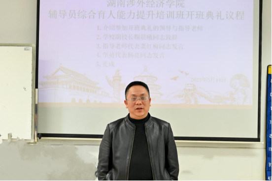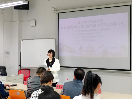 为进一步加强辅导员队伍建设,切实提升辅导员的思想政治素质、职业素养、综合能力和育人水平,推动辅导员队伍专业化、职业化发展,3月14日上午,学校在四教310教室举办辅导员综合育人能力提升培训班开班典礼,副校长鞠晨曦、学生工作处处长邝继红以及20余名辅导员代表参加会议。