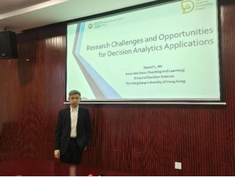 香港恒生大学巫耀荣副院长介绍了香港恒生大学决策科学与管理学院的专业架构及发展愿景,并做了题为“Research challenges and opportunities for Decision Analytics applications”的学术报告,阐释了他的原创性研究成果。