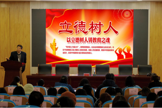 周仲秋院长从价值导向、战略发展、人本主体、本土特色四个维度解读了新时代“九个坚持”,阐述了新时代教育的首要问题——为谁培养人、培养什么人、怎样培养人。重点谈到了教育是立德树人的事业,“德”不仅在中华优秀传统文化中具有深邃内涵,在新时代更要把立德树人的成效作为检验学校一切工作的根本标准。