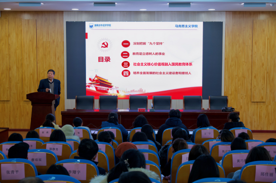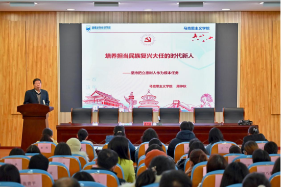 周仲秋院长强调学校立身之本在于立德树人,所有老师应育人先立德。就如何把培育和践行社会主义核心价值观融入教育体系、如何培养全面发展的社会主义建设者和接班人,周仲秋院长分享了自己的见解,强调在教学工作中要强化教育引导、实践养成,把社会主义核心价值观转化为学生的情感认同和行为习惯,培育勤学、修德、明辨、笃实的青年人。