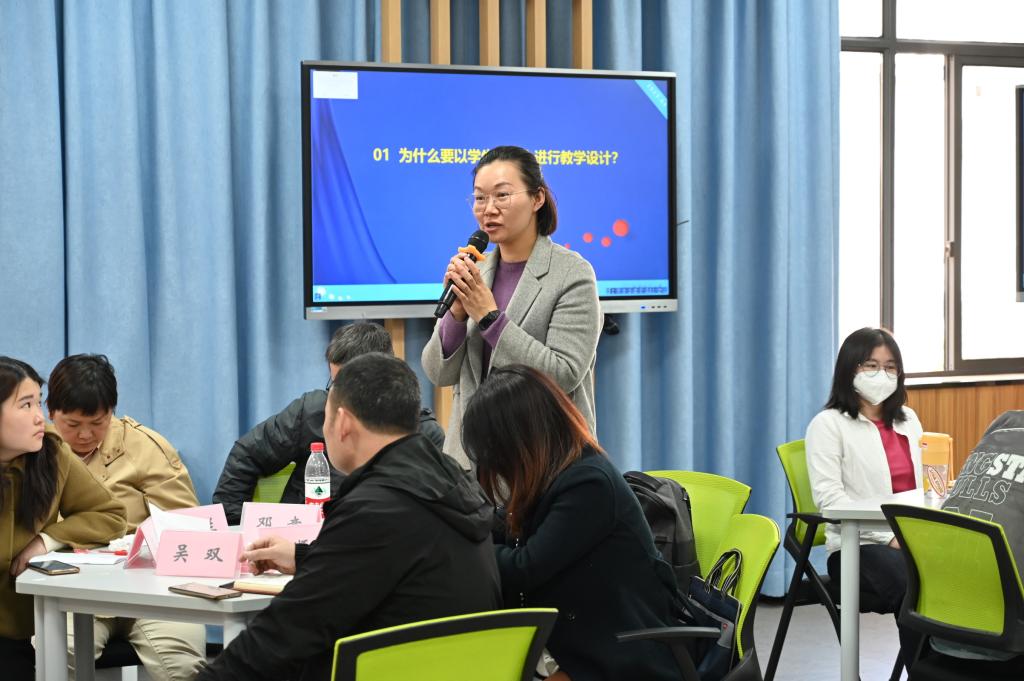 胡老师认为,所谓“学”,是指学生的学习,在教学设计中表现为学习目标,即学生的预期学习结果。胡老师对教师应该具备的教学能力进行了深入阐述,以小组为单位展开热烈研讨,现场分析图书排版和指数函数两份教案,并请小组代表共同探讨教学设计与教案之间的区别。