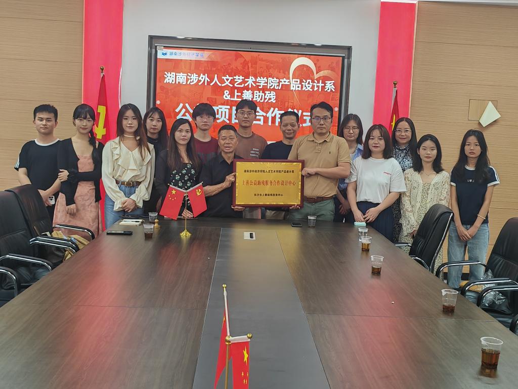 上善助残服务中心聘请人文艺术学院老师向威和黄玮为“上善助残爱心形象大使”。中心主任谢向前介绍,随着产品设计系的师生加入,相信上善的公益助残之路越来越宽广。