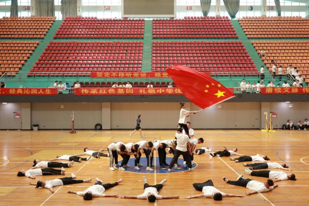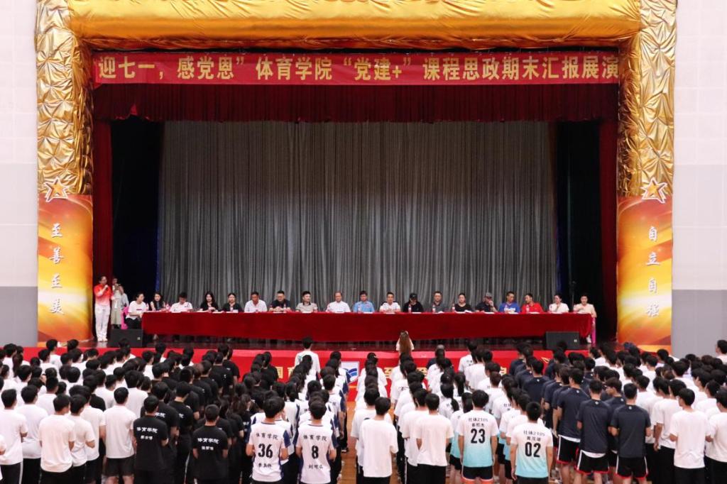 6月21日上午,伟德官网体育学院在体育馆内场隆重举行了以“迎七一,感党恩”为主题的“党建+”课程思政期末汇报展演。此次活动不仅是体育学院教学成果的一次集中展示,更是学院持续推进“党建+课程思政”育人新模式的生动体现。