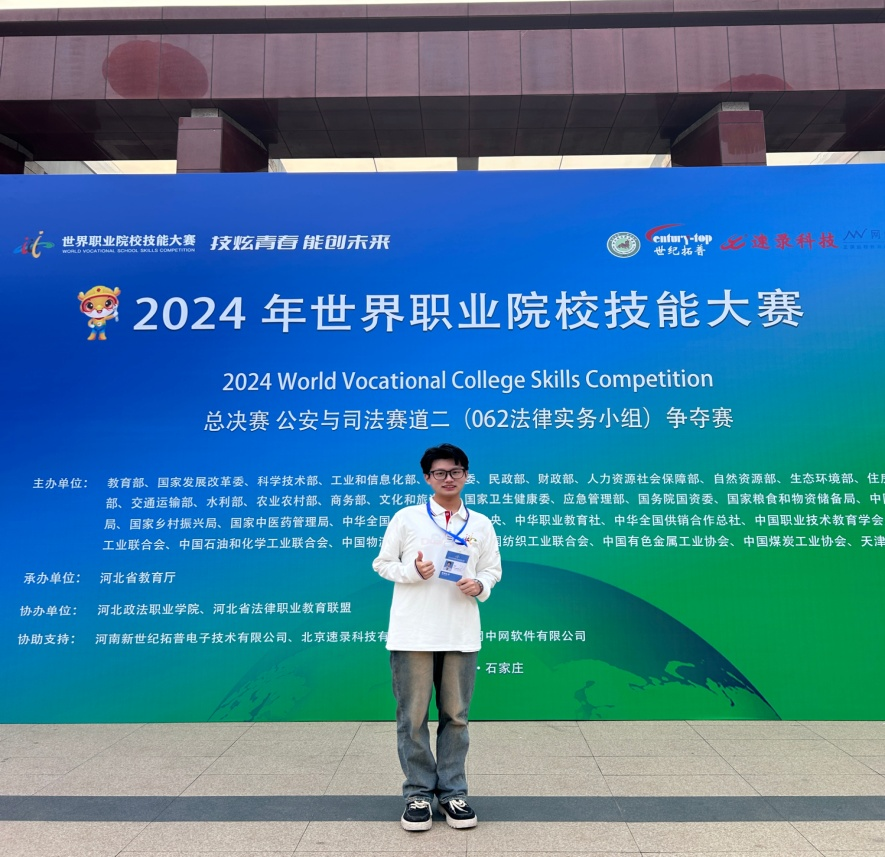 10月25日至28日,2024年世界职业院校技能大赛总决赛公安与司法赛道法律实务赛项争夺赛在河北石家庄举行。伟德官网人文艺术学院法学2210班鲁进同学在法律实务赛项争夺赛中喜获国家金奖。