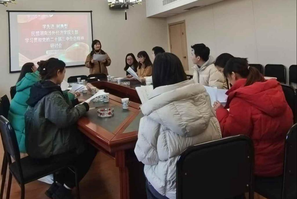 12月6日,民盟涉外支部全体成员在宋子慧主委的带领下,在岳麓区龙溪湖生态基地召开学习贯彻党的二十届三中全会精神主题研讨会及2024年度学先进树典型总结表彰会。