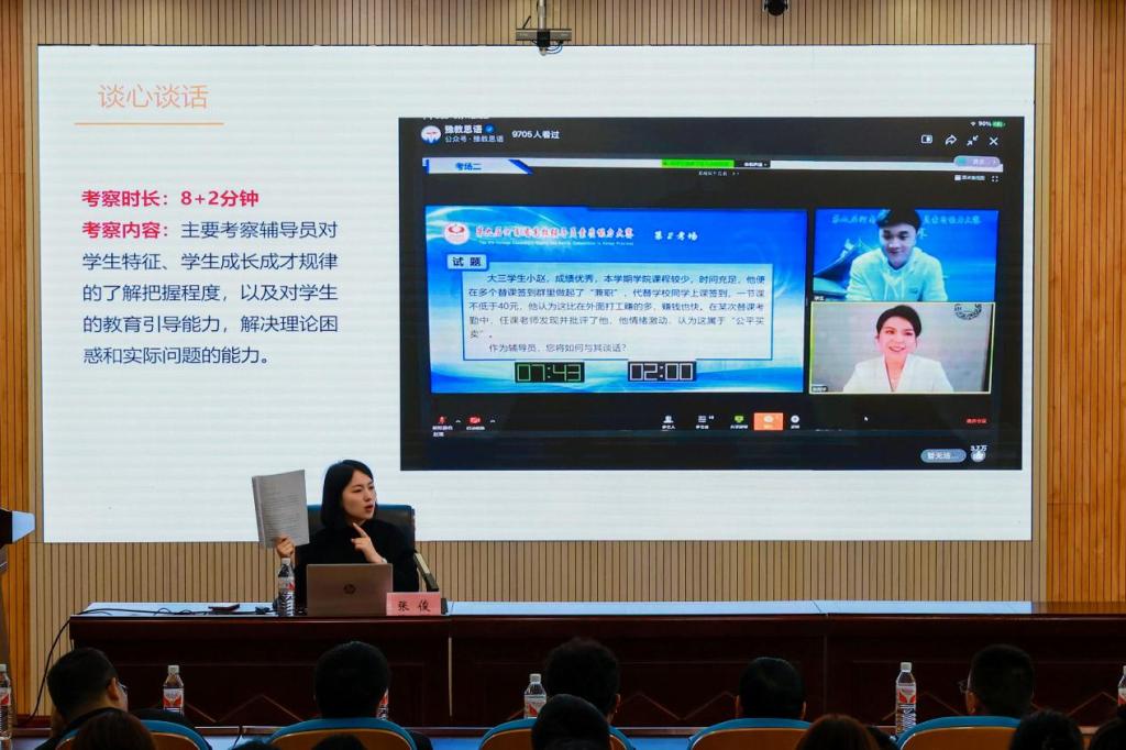张俊老师从自身大赛经历出发,以其辅导员工作室为依托,以“思想理论教育与价值引领”为导向,从新时代下学生工作面临的形势和任务、辅导员工作的瓶颈和困囿、辅导员素质能力提升路径思考三方面分享经验。首先,她通过分析“变”与“不变”的国内外复杂形势,鼓励辅导员们在百年变局中努力探索符合自身特色的育人坐标,积极培育新时代社会主义事业的建设者和接班人。其次,面对辅导员的职业困惑,她强调根据当代大学生的新特点、新需求,加强自身理论修养,积极参与辅导员素质能力大赛等各类竞赛,以赛促学,在比学赶超中破除职业倦怠,在理论和实践的结合中获得能量补给。最后,她以“走近学生,走进学生”“教育无他,唯爱与榜样”与大家共勉,强调将思想引领、团队建设和立德树人成效作为辅导员一切工作的出发点和落脚点,推动学生思想政治工作质量持续跃升。