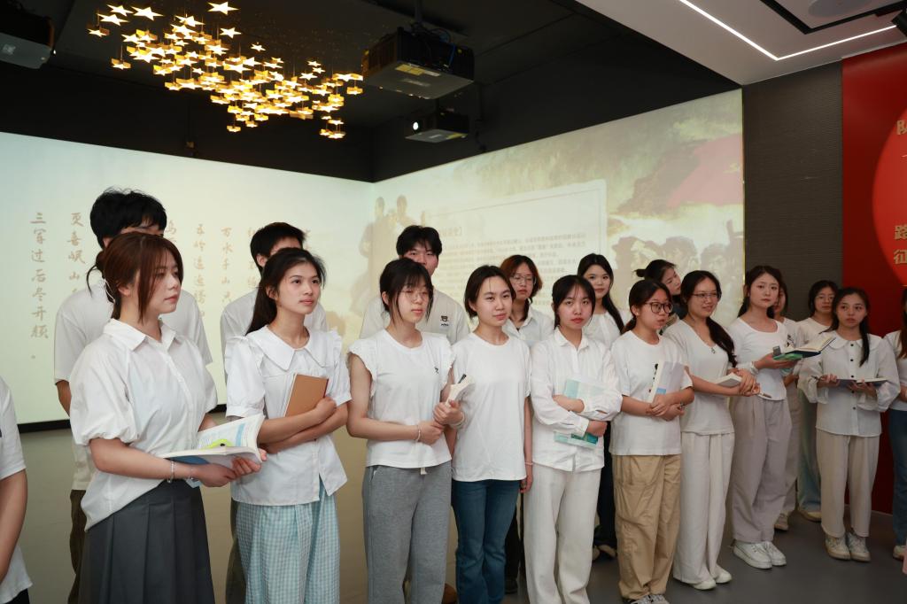 学生们紧跟教师的步伐,沿着历史的发展脉络,领略红军长征的艰苦卓绝,伴随着雪山布景泛起的蓝光,身临其境地感受历史温度;在气壮山河的毛泽东诗词互动屏前,学生诗诵琅琅;在逼真传神的长征微缩场景模型前,师生温情互动;在深情动人的情景讲述中,学生们更深层次理解中国工农红军不畏艰险、英勇顽强的革命英雄主义和革命乐观主义精神,更进一步坚定中华民族崇高理想信念。