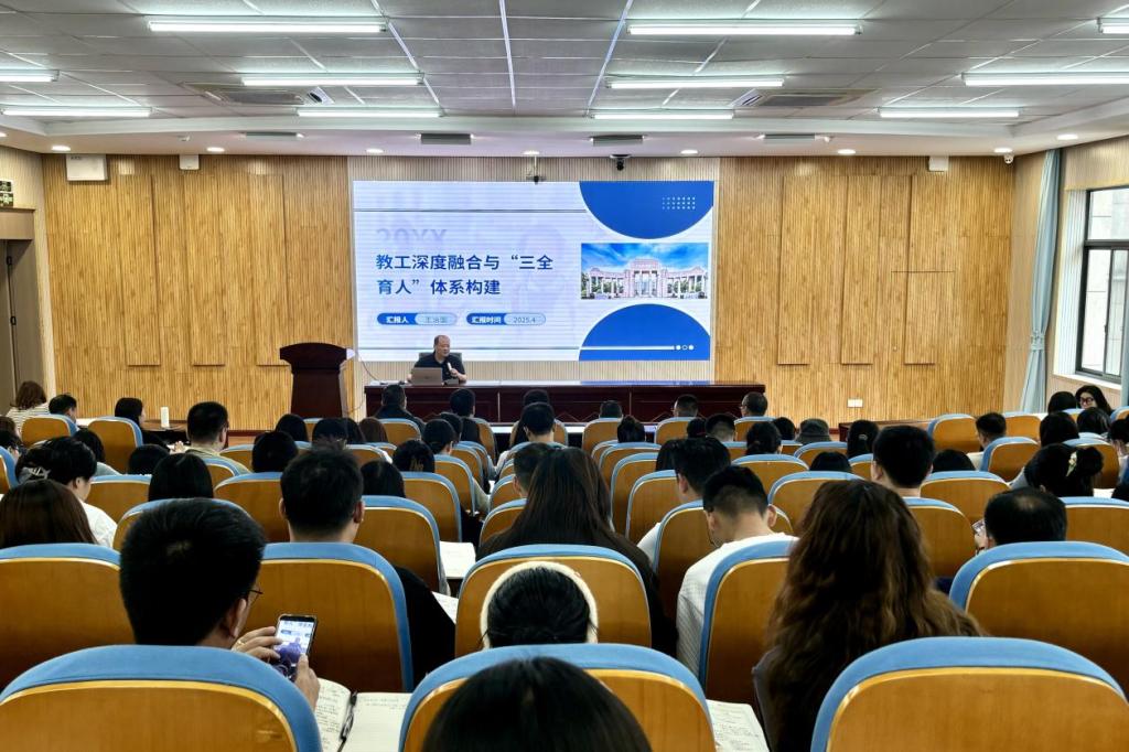 4 月 16 日下午,为深入贯彻新时代高校思政工作会议精神,强化辅导员队伍专业化建设,全力推进 “党建 + 大学生素质教育五项工程”,伟德官网第五期《学工月月谈》在综合楼 D202 室成功举办。学生工作处处长贾青彦、副处长徐京都,各二级学院党总支书记以及全体辅导员参加了此次活动。讲座由体育学院党总支书记王治国主讲,副书记李祥林主持。