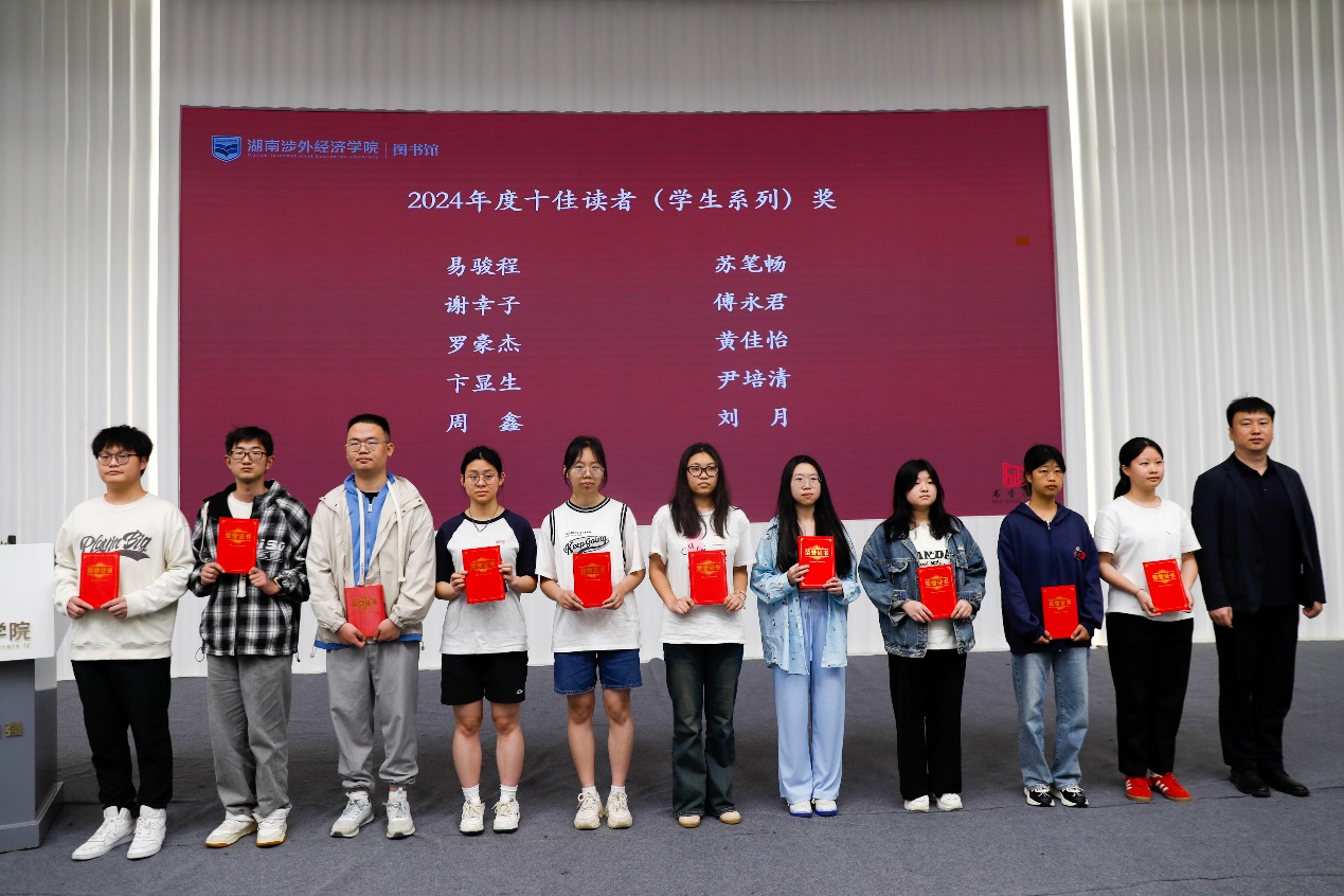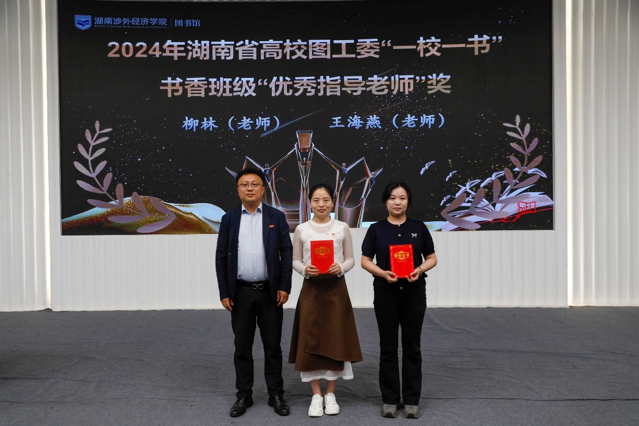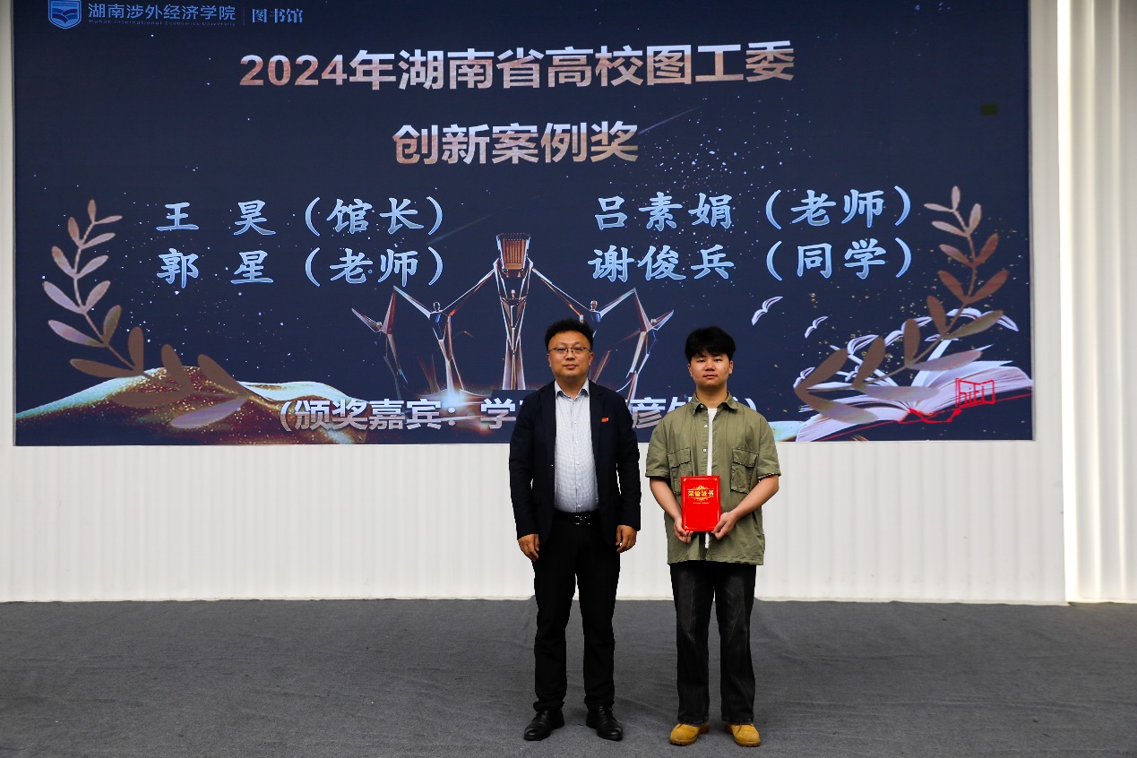 会上,学生工作处处长贾青彦、教务处处长陈善敏、图书馆馆长王昊等人分别为2024年度“书香涉外”系列读书活动中表现突出的典型进行优秀表彰,同时还为在2024年度湖南省“一校一书”阅读推广活动获奖集体和个人进行了颁奖与表彰。