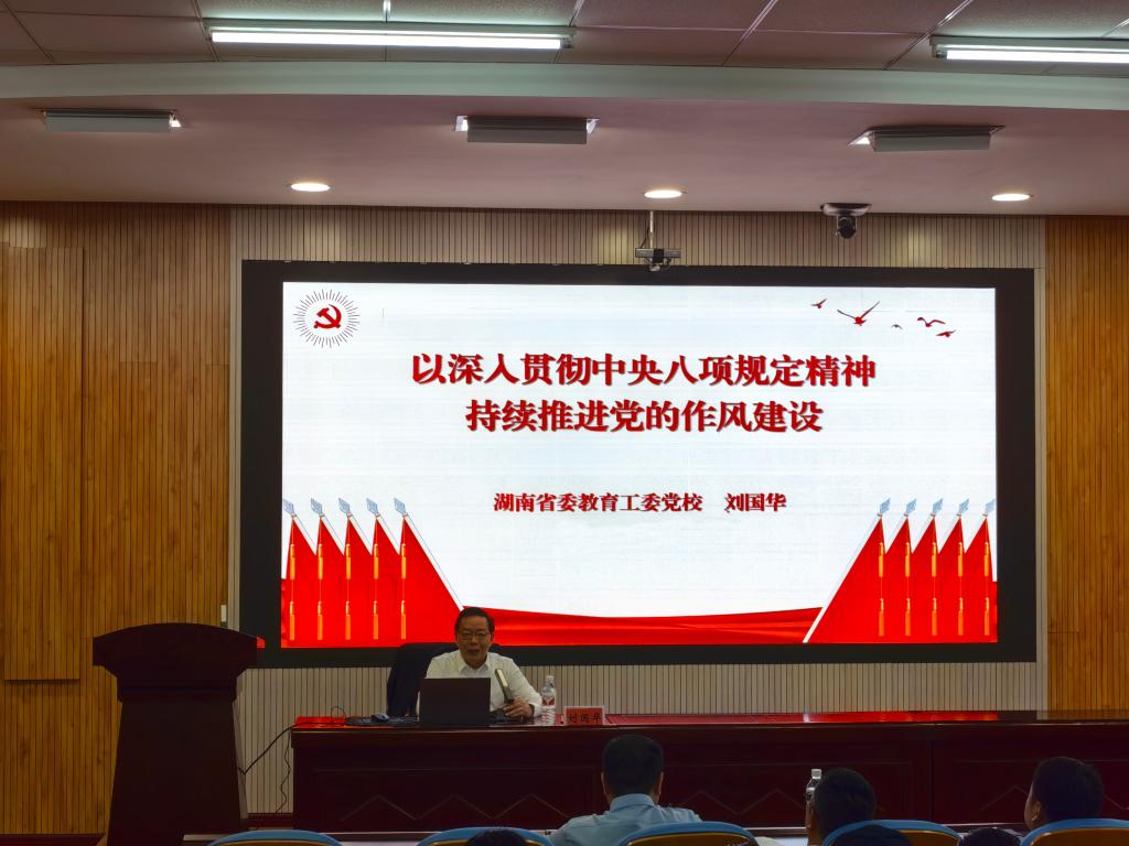 刘国华教授从中央八项规定精神的科学内涵、深入开展学习教育的现实意义、贯彻中央八项规定精神的实践要求等三个方面对如何深入贯彻中央八项规定精神、持续推进党的作风建设作了系统阐述和深入解读。他指出,在中央八项规定精神的学习过程中,要全面了解中央八项规定的出台意义,准确理解中央八项规定的内容,从贯彻中央八项规定精神的成效中看到习近平总书记的人民情怀,看到共产党人的严肃认真。深入贯彻中央八项规定精神学习教育是新时代新的形势和任务的必然要求,是解决世界大党独有难题的必然要求,是正风肃纪整顿党的作风的必然要求。