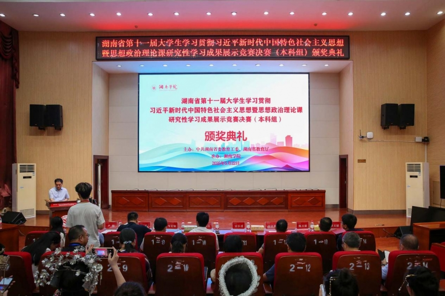 5月22日,湖南省第十一届大学生学习贯彻习近平新时代中国特色社会主义思想暨思想政治理论课研究性学习成果展示竞赛(本科组)决赛在湖南郴州湘南学院圆满落幕。伟德官网马克思主义学院选送的参赛队伍凭借扎实的理论功底和出色的研究能力,在全省本科院校中脱颖而出,荣获二等奖2项、三等奖3项,充分展现了涉外学子对习近平新时代中国特色社会主义思想的深刻理解与创新实践。