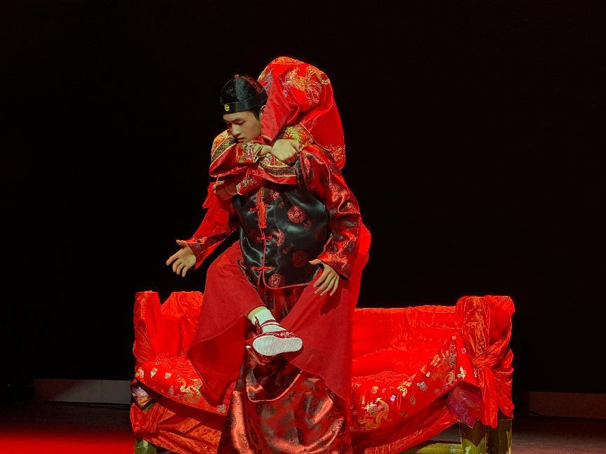 本次展演最受关注的是学生对复杂人物的塑造能力。在《金锁记》这部大女主戏中,谢静和肖诗绮共同饰演曹七巧这一角色,尽管设置了AB两角分饰前期与后期的曹七巧,但该角色台词量巨大、情感层次丰富、舞台调度复杂,对于学生而言,把控人物情感分裂仍是巨大挑战 。饰演曹七巧的同学从19岁少女演到50岁老妪,通过形体控制实现年龄跨越——少女时期的活泼步态、中年时期的僵硬腰板、老年时期的佝偻身形,配合妆容与声线的精准变化,完成了极具说服力的角色塑造。而饰演姜季泽的同学则通过三次"楼梯告白"的细节处理,展现角色从试探到敷衍再到利用的情感变化,其最后一次告白时颤抖的手指与躲闪的眼神,将人性的虚伪刻画得入木三分。