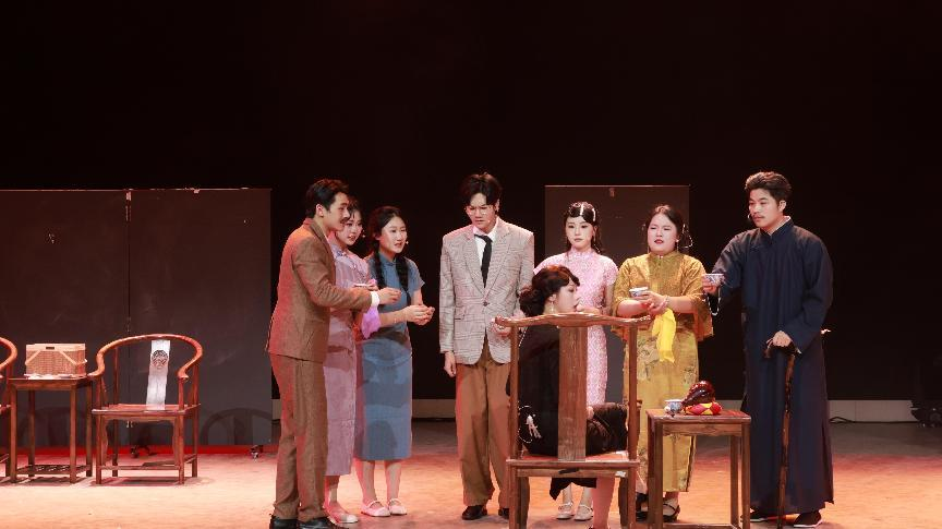 据指导教师王一真老师透露,剧组为还原民国语境,进行了长达84天的精心筹备与排练。期间,王一真老师凭借丰富的教学经验与专业素养,悉心指导学生突破表演困境,耐心调解团队矛盾,引导学生在碰撞中达成共识、凝聚力量。此外,王一真老师还组织学生走进长沙老社区,深入观察不同年龄、不同身份人物的生活状态、行为习惯与情感表达方式 。学生们与社区居民交流攀谈,记录下市井生活中的细节,将老社区里人们的喜怒哀乐融入角色塑造中。这种"文本溯源+生活体验"的创作模式,让00后演员理解了跨越时代的人性幽微。
