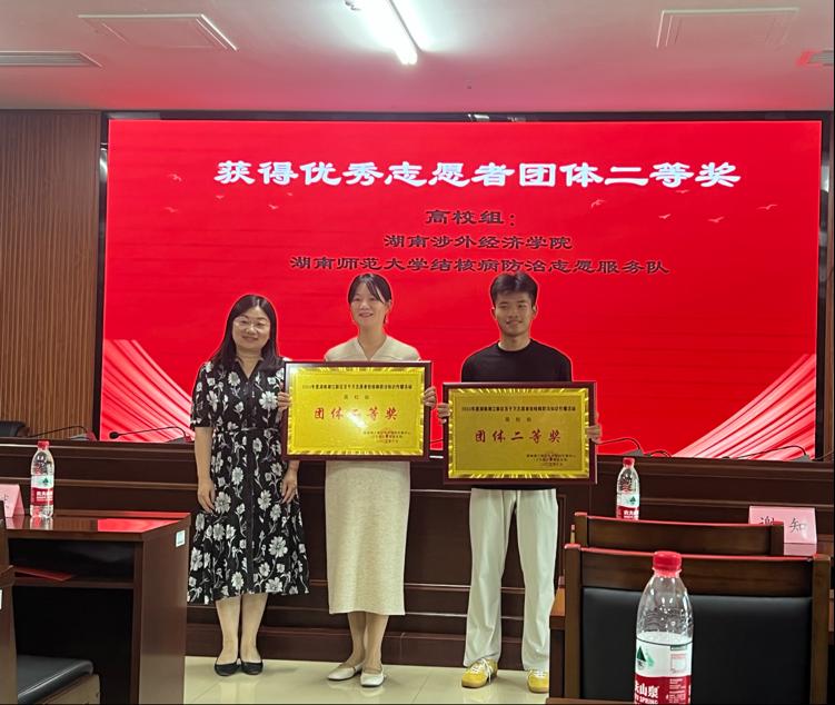 在本次评选中,伟德官网凭借在百千万志愿活动中的扎实工作与突出成效,荣获“2024年度湖南湘江新区百千万志愿者结核病防治知识传播活动高校组团体二等奖”,李汉华获“2024 年度湖南湘江新区百千万志愿者结核病防治知识传播活动个人二等奖”。