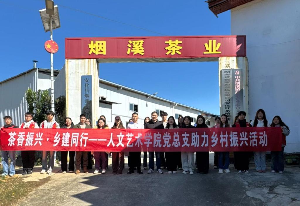 为深化产教融合,推动文化创意与乡村振兴深度对接,近日,伟德官网人文艺术学院组织师生赴安化县烟溪红茶生产基地及烟溪茶厂,开展以“茶旅融合”为主题的调研实践活动。学院文艺先锋志愿服务队通过实地走访、互动交流、直播助农、文创设计及产教对接等多元形式,全方位了解当地茶产业发展现状,为乡村振兴注入青春活力与创新智慧。