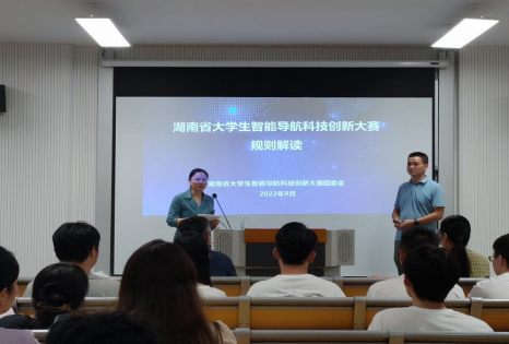 为促进伟德官网电子信息类专业基于北斗卫星导航技术开展“智能导航+”创新应用性研究,为北斗产业发展和信息产业向智能信息产业升级换代培养创新性人才,推动电子信息类专业教学改革,9月16日下午,信息与机电工程学院于八教105举办了智能导航科技创新大赛专家讲座,邀请国防科技大学范晨博士对湖南省大学生智能导航科技创新大赛的规则进行了解读。本次讲座由自动化系主任彭琼主持,参会人员包括北斗安全研究院宋倩老师,信息与机电工程学院自动化系、电子信息系、信息与通信系全体教师、本次参加智能导航科技创新大赛的学生以及对该比赛感兴趣的学生。