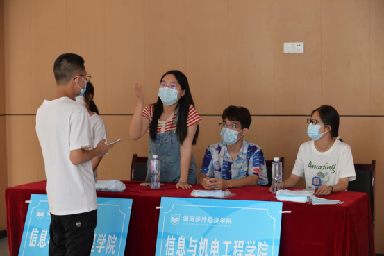 迎新现场,全体教师及学生志愿者热情接待每一位新同学,及时与学生及家长沟通,耐心解答他们的疑问,积极引导每一位新生能够有序、顺利地完成各项入学手续的办理。