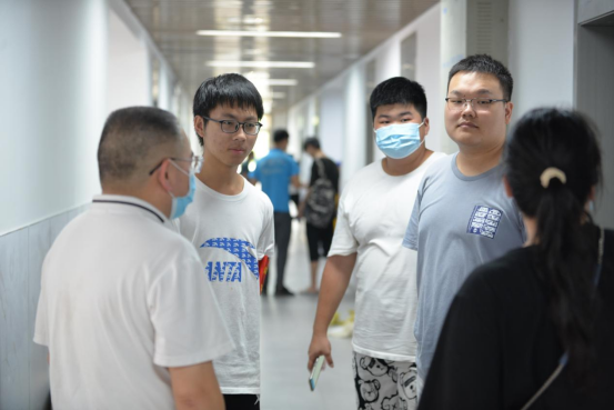 下午4点,唐志文、李祥林以及宿舍专干刘丽娟等辅导员一同走进新生宿舍,深入了解新生宿舍情况,同时看望慰问辛勤忙碌的迎新志愿者,为同学们送去学院的关怀、叮嘱与祝福。