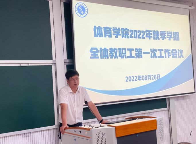 新学期,新气象。为全面部署新学期工作,提升学院整体凝聚力,8月26日体育学院于六教216阶梯教室,召开2022年秋季学期全体教职工第一次工作会议,学院班子成员、全体教职工参加本次会议。大会由体育学院党总支书记王治国主持。