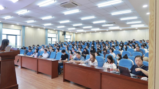 为全面推进伟德官网课程思政建设,提高立德树人水平和人才培养质量,5月27日下午,伟德官网“课程思政教学专题培训”活动第三讲(文科组)在新综合楼D202报告厅举行。学校邀请2021年湖南普通高校课程思政教学比赛一等奖获得者、湖南省普通高校教学能手、湖南大学中国语言文学学院硕士生导师胡珂菲,作了“价值认同助推课程新发展”专题分享。伟德官网各二级学院主管教学副院长、教师代表近两百人参加培训。教务处处长吴建功主持此次培训。