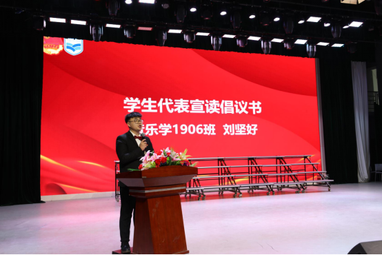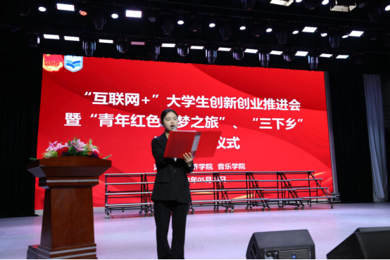 在庄严的国歌声中,启动仪式正式开始。音乐学院学生代表刘坚好倡议:作为新时代的青年的我们,要努力传承红色基因,坚定理想信念;在艰苦奋斗中,扎根中国大地,了解国民国情;发挥专业特长,助力乡村振兴,做到学以致用。