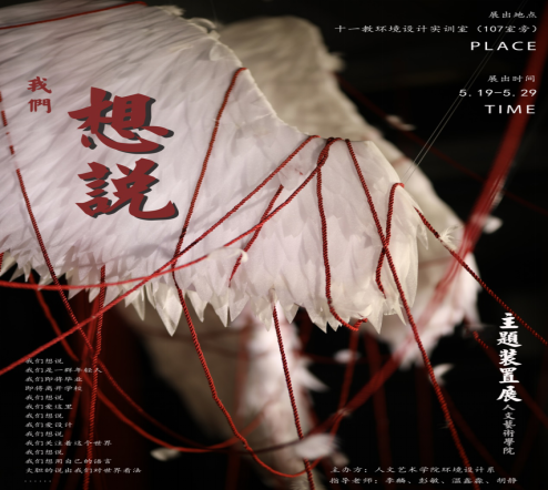 5月19日至5月29日,人文艺术学院环境设计系在十一教环境设计实训室(107室旁)举办以“我们.想说”为主题的小小展。